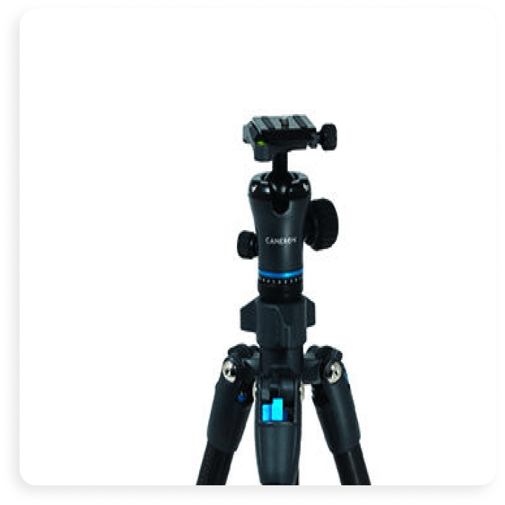 The CAMERON CF610 TRIPOD W/BH20 BALLHEAD combines a lightweight 4- section carbon fiber tripod with a BH20 ball head. The Cameron CF610 has fast and smooth leg extensions with a 25mm diameter. The new 4-section Carbon Fibre tripod delivers maximum rigidity from the lightest components; a masterpiece of engineering designed for photographers who want the best from their tripod and need it to be easily transportable. The key feature of the CF610 is its reversible center column mechanism, spring-loaded stabilization hook, and 360-degree ball head with panoramic markings.